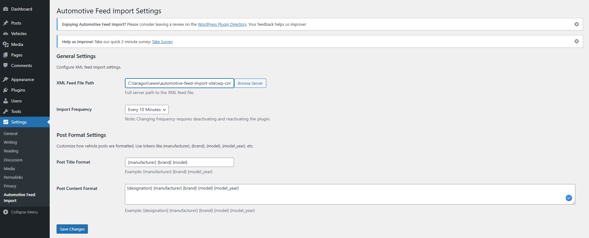 Navigate to Settings Automotive Feed Import in your WordPress admin panel.